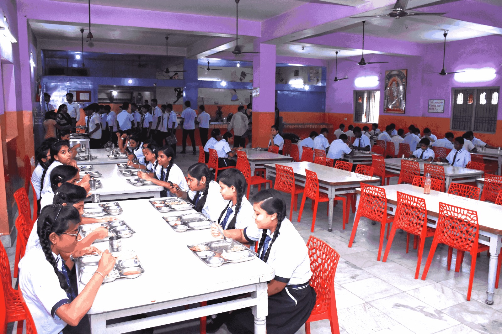 The refectory at Sai Valley World School is more than just a dining space—it's a place where nutrition meets care. Designed to promote health, comfort, and community, our well-lit, air-conditioned dining hall features comfortable seating and hygienic surroundings. Students are served well-balanced, nutritious meals thoughtfully planned to support their growth, energy, and overall well-being. With separate vegetarian and non-vegetarian options and a dedicated canteen, every meal is both wholesome and delicious. Clean cutlery, courteous staff, and a focus on food safety ensure a pleasant dining experience every day.
